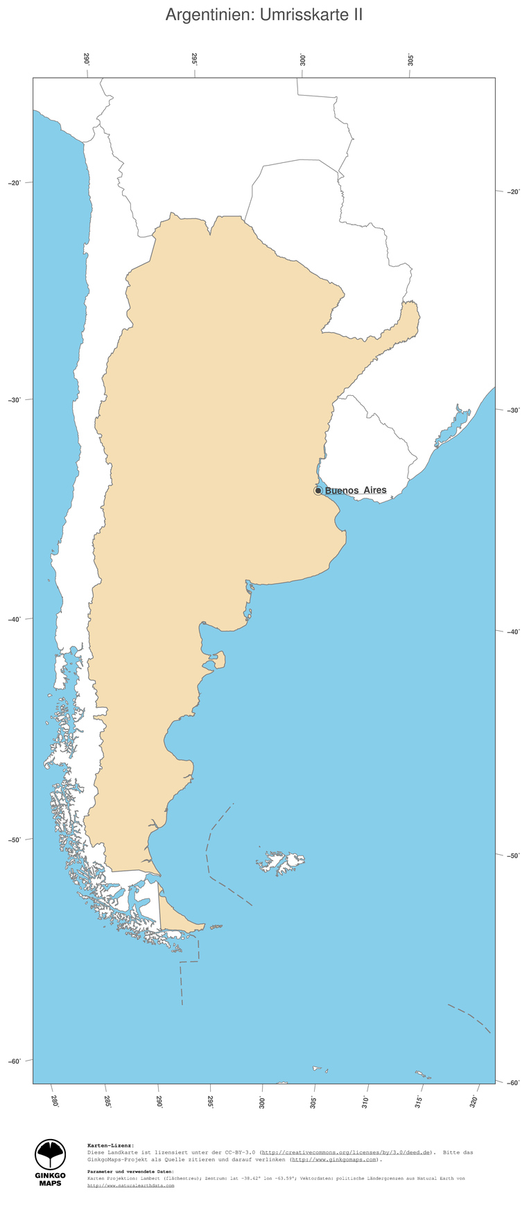 #1 Landkarte Argentinien: Politische Staatsgrenzen (Umrisskarte)