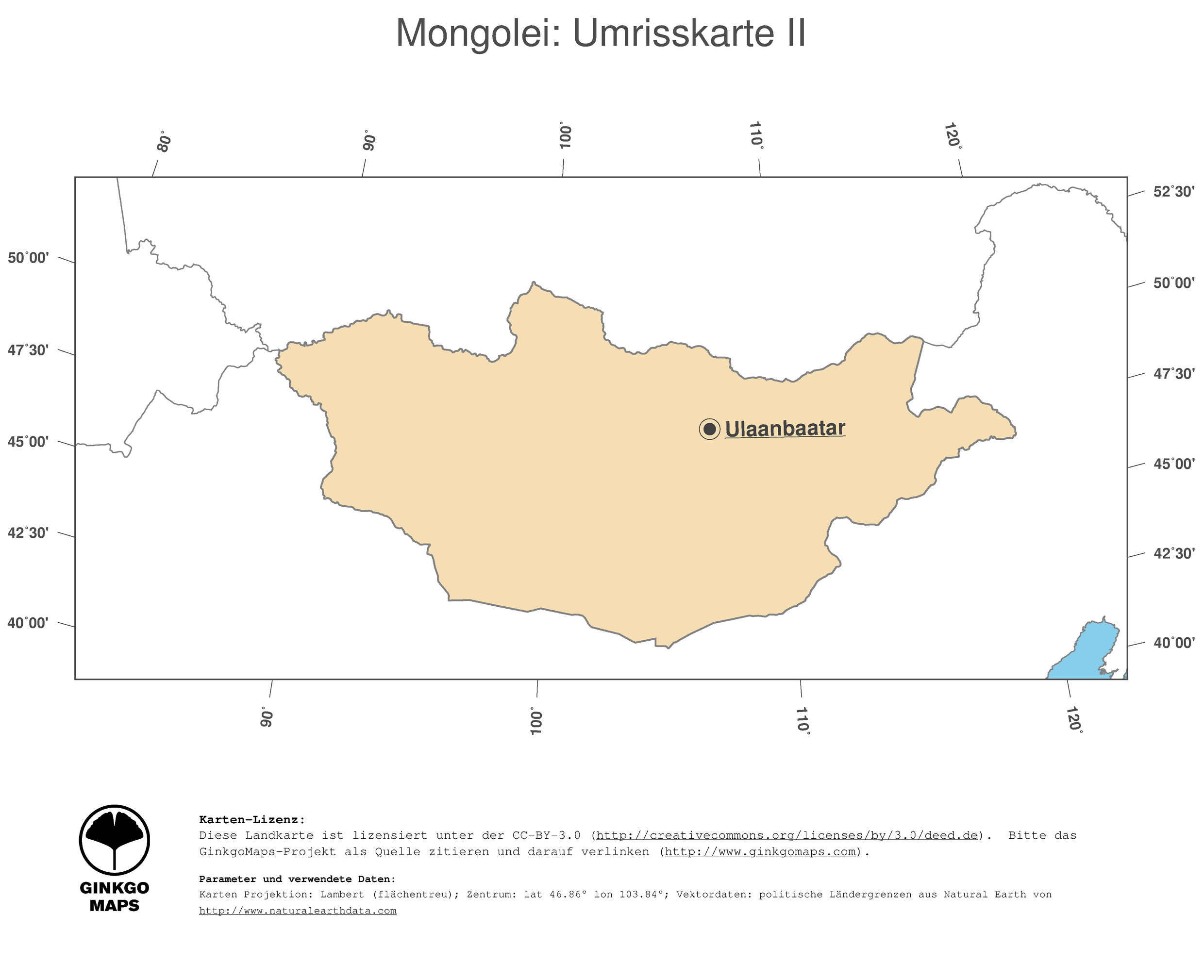#2 Landkarte Mongolei: Politische Staatsgrenzen und Hauptstadt (Umrisskarte)