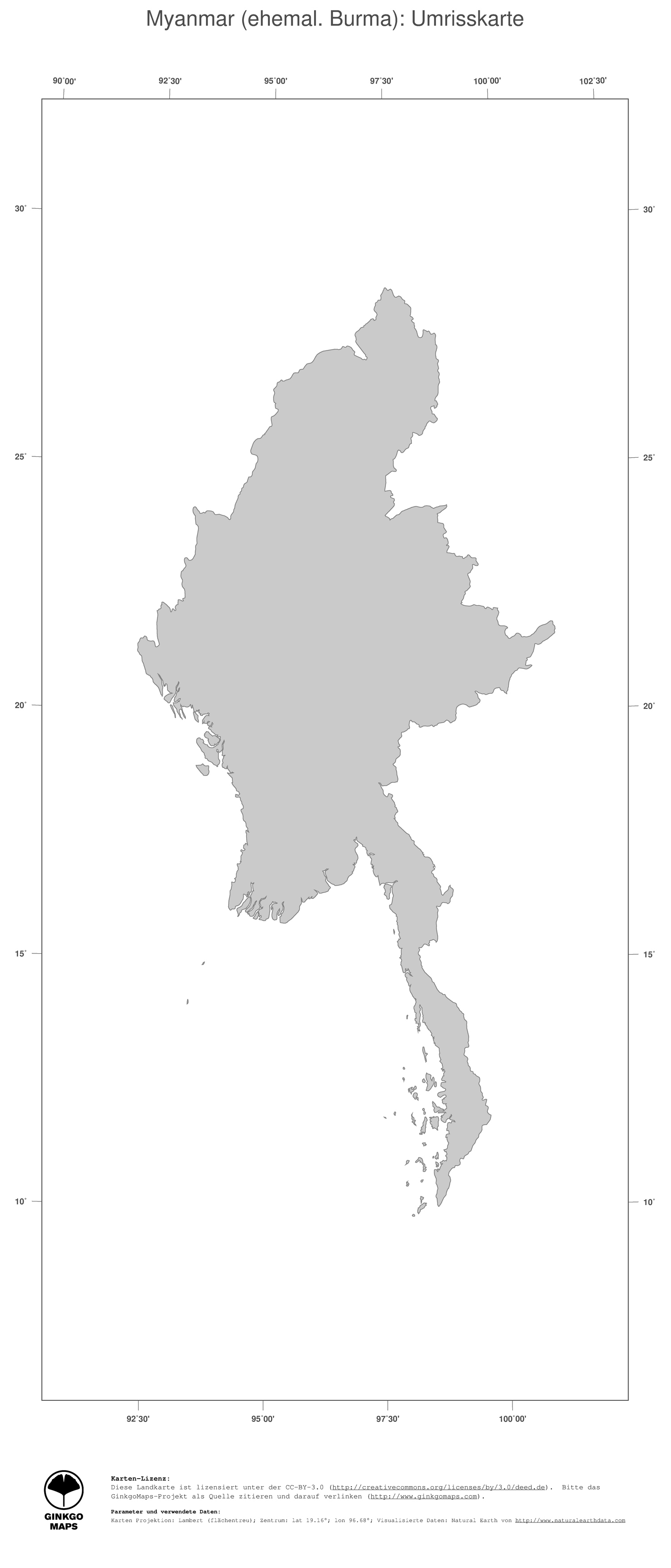 #1 Landkarte Myanmar: Politische Staatsgrenzen (Umrisskarte)