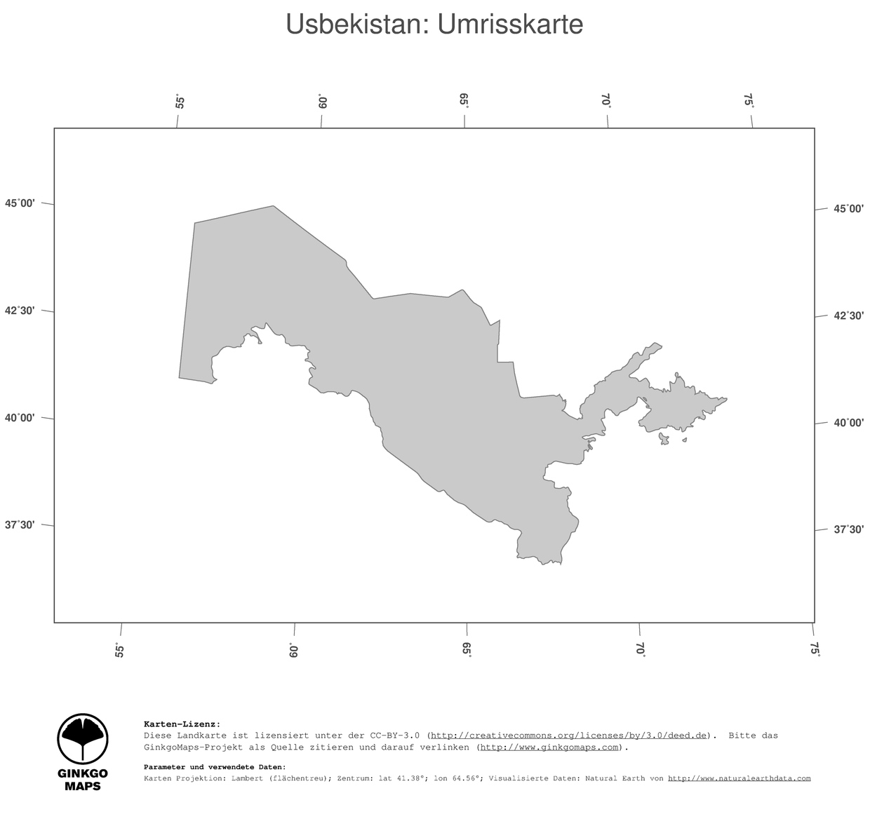 #1 Landkarte Usbekistan: Politische Staatsgrenzen (Umrisskarte)