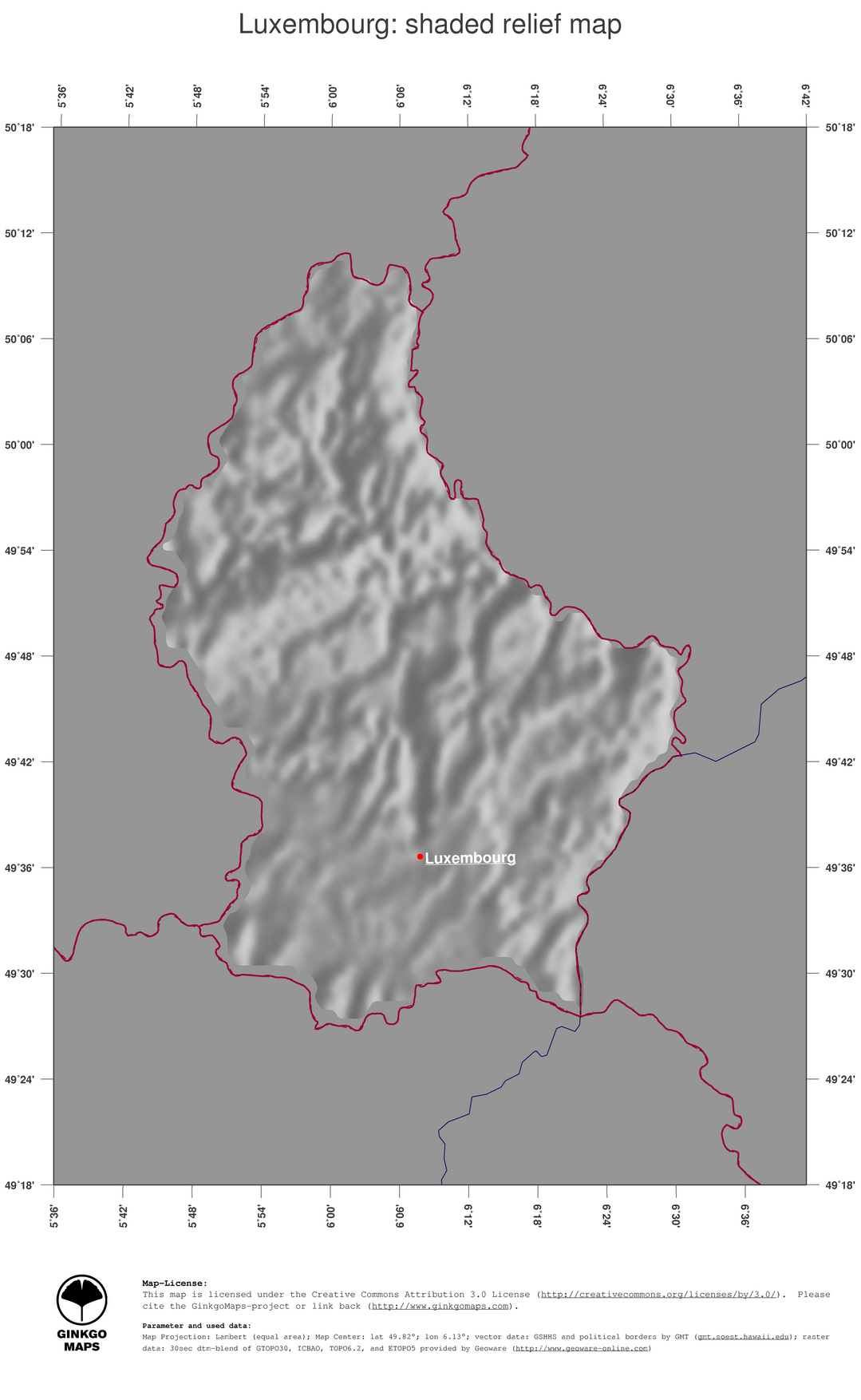 #4 Map Luxembourg: shaded relief, country borders and capital